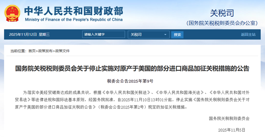 自2025年11月10日凌晨00:01起清关的中国进口商品,美国将降低原本加征的所谓“芬太尼”关税,从20%关税下调至10%。同时,暂停实施24%对等关税、出口管制穿透规则、港口301收费一年,延长部分301关税豁免至2026年11月10日。