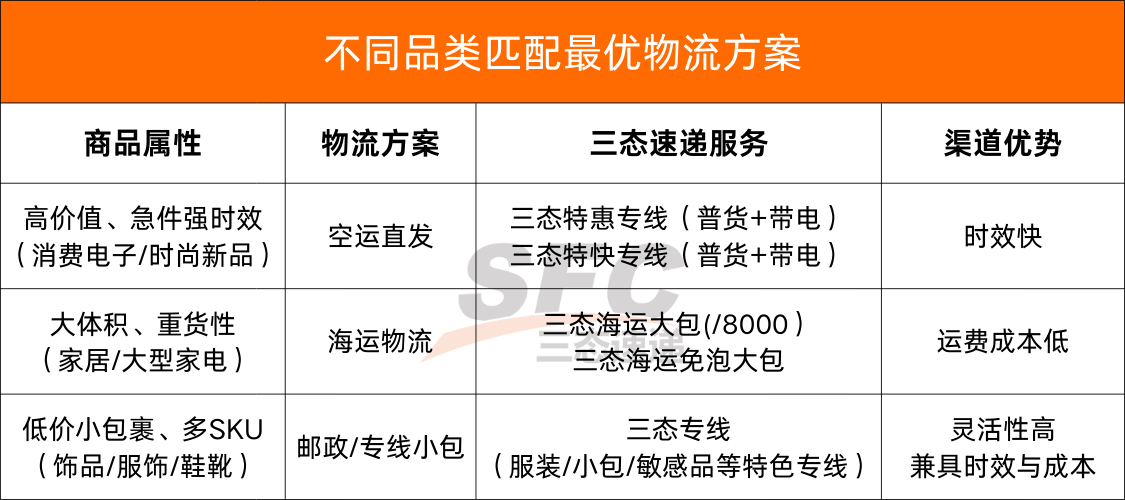 专业物流规划是跨境卖家把握营销节点、稳定交付的关键。作为中国跨境自配送物流服务商,三态速递(SFC)为卖家提供覆盖全球的多元化物流解决方案。